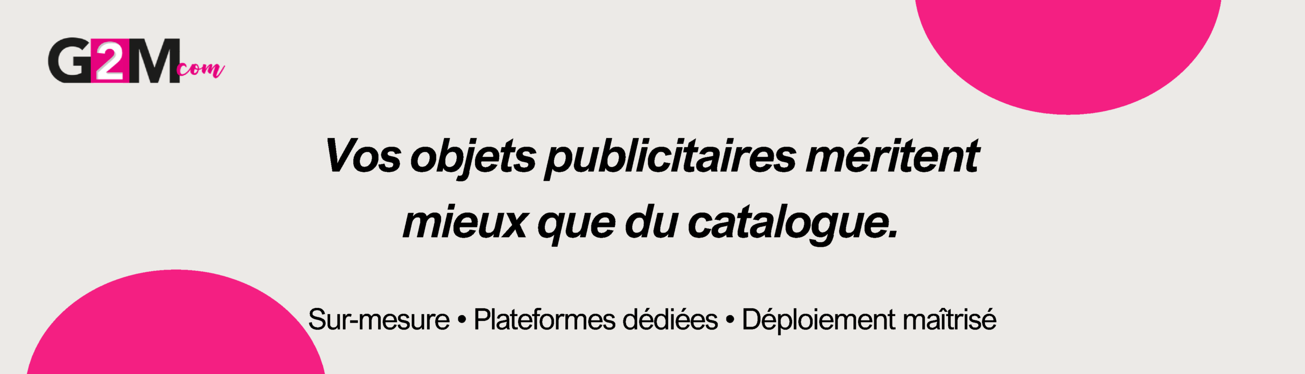 Avec une approche agile, structurée et orientée résultats, G2Mcom s’impose comme un interlocuteur de référence pour les entreprises souhaitant professionnaliser et valoriser leur stratégie d’objets publicitaires.