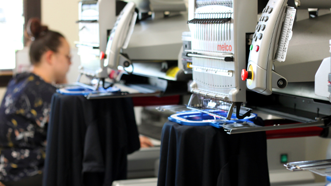 Notre atelier de broderie et de marquage textile, intégré dans nos locaux, occupe lui aussi une place centrale dans cette évolution. Cette maîtrise sur place nous permet d’être plus réactifs, de proposer davantage de souplesse, y compris sur de petites quantités, et d’assurer un suivi précis de la qualité de production. C’est aussi une manière pour nous de rester au plus près des projets, en conciliant conseil, fabrication et service.